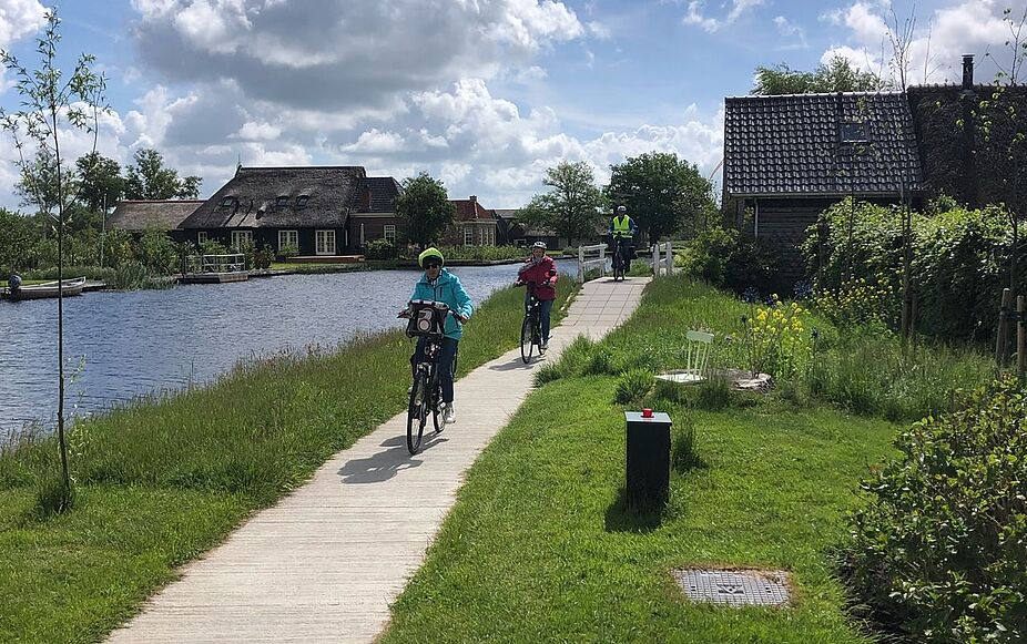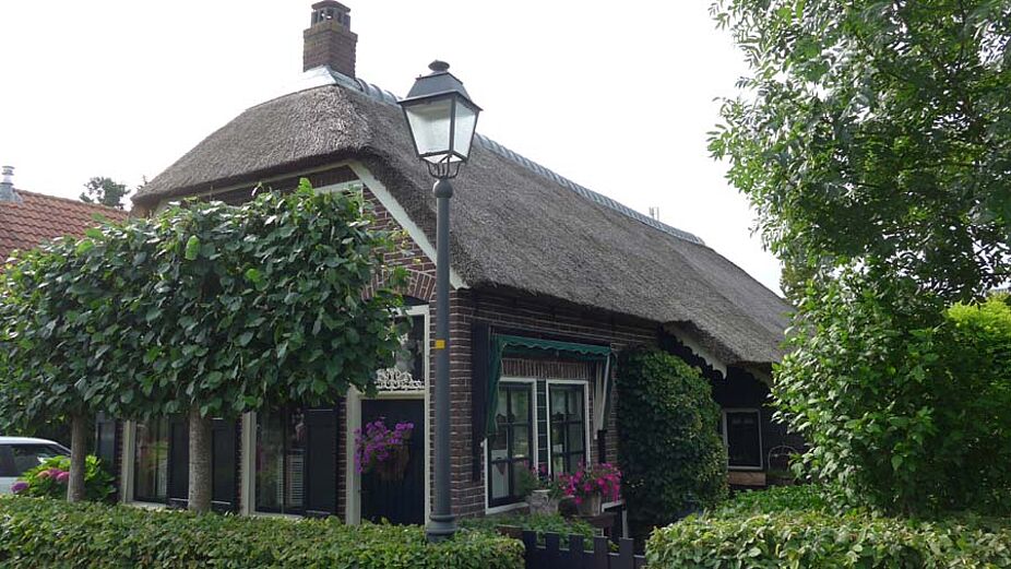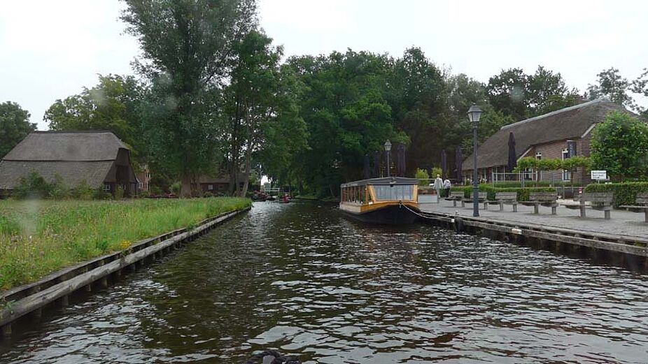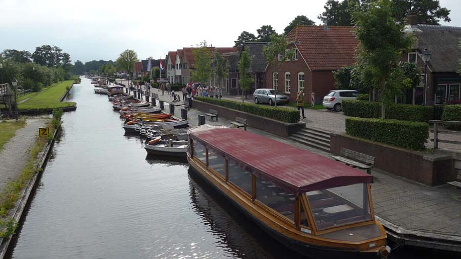 Wir fahren weiter auf einem wunderschönen Weg entlang der Thijssengracht und erreichen das „Venedig des Nordens“ mit seinen Kanälen, schmalen Fußwegen und Holzbrücken. Durch die vielen kleinen reetgedeckten Häuser am Ufer der Kanäle wirkt der Ort etwas verschlafen. Man kann sich vorstellen, wie sich in alten Zeiten das Leben auf dem Wasser abspielte. Viele Boote liegen am Kanal. Zahlreiche Cafés, teils mit Terrassen am Wasser, laden zum Kaffeetrinken ein. Lohnend ist auch ein Besuch im Museum Giethoorn 't Olde Maat Uus.